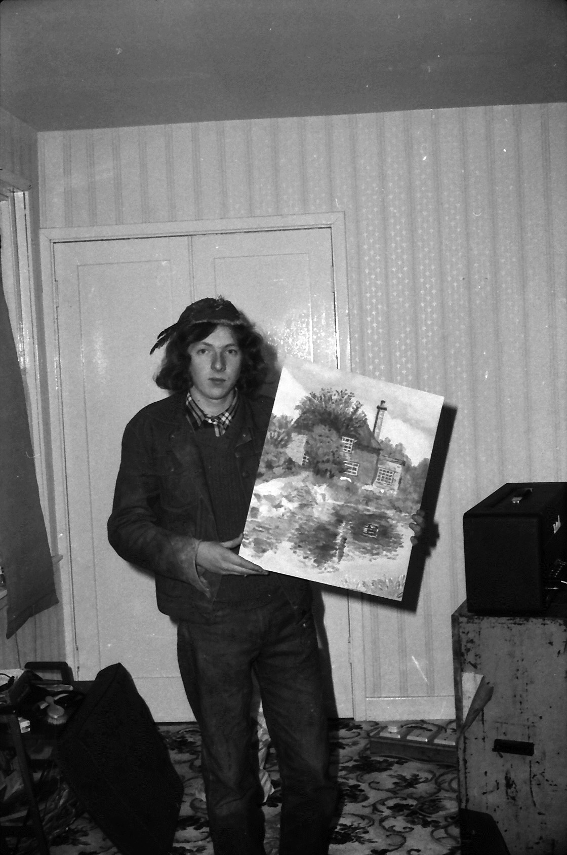 Jackie Blackwood in the scout hut with Charlie Lusk in the background