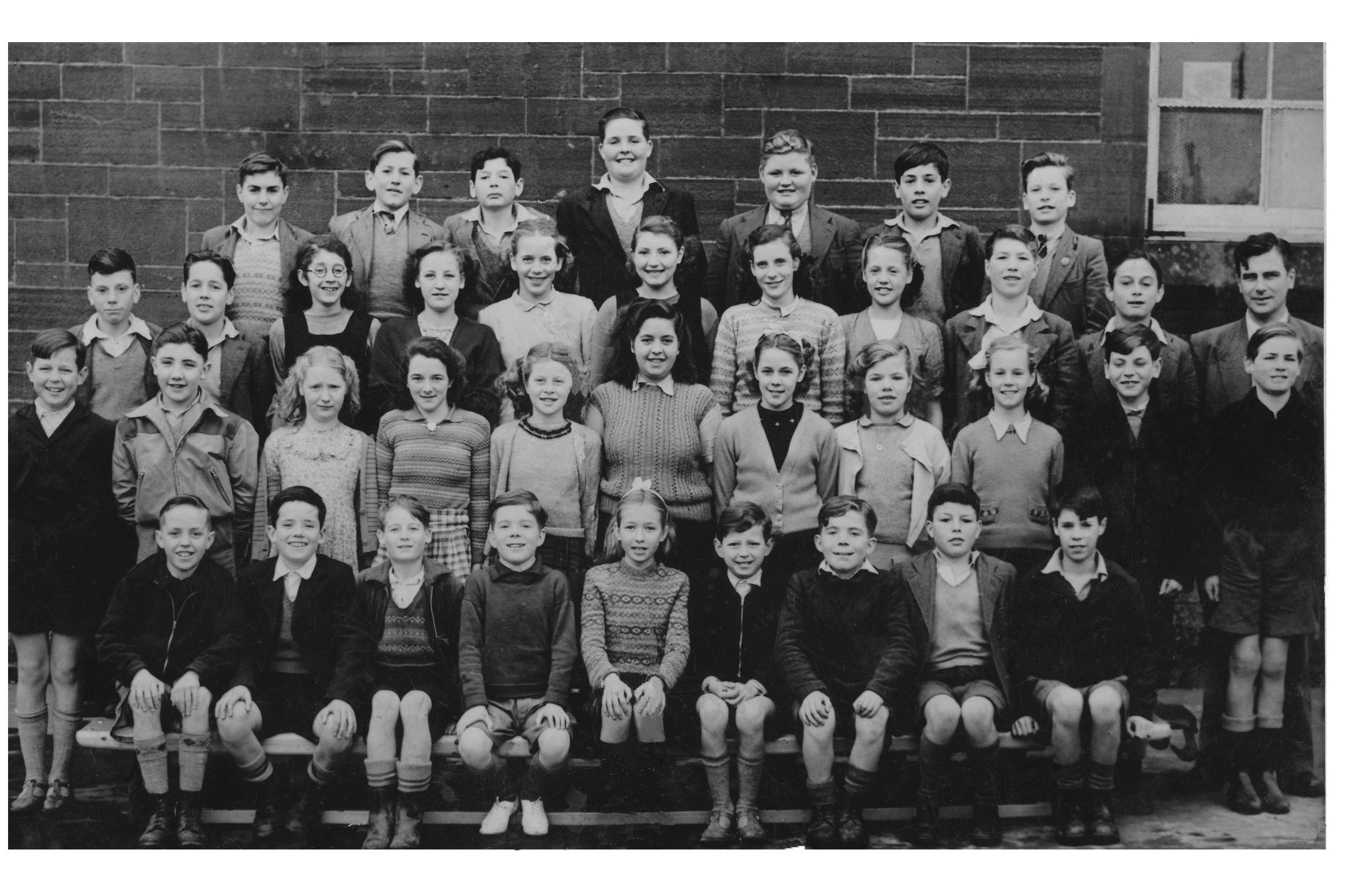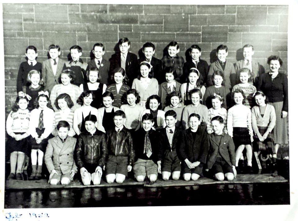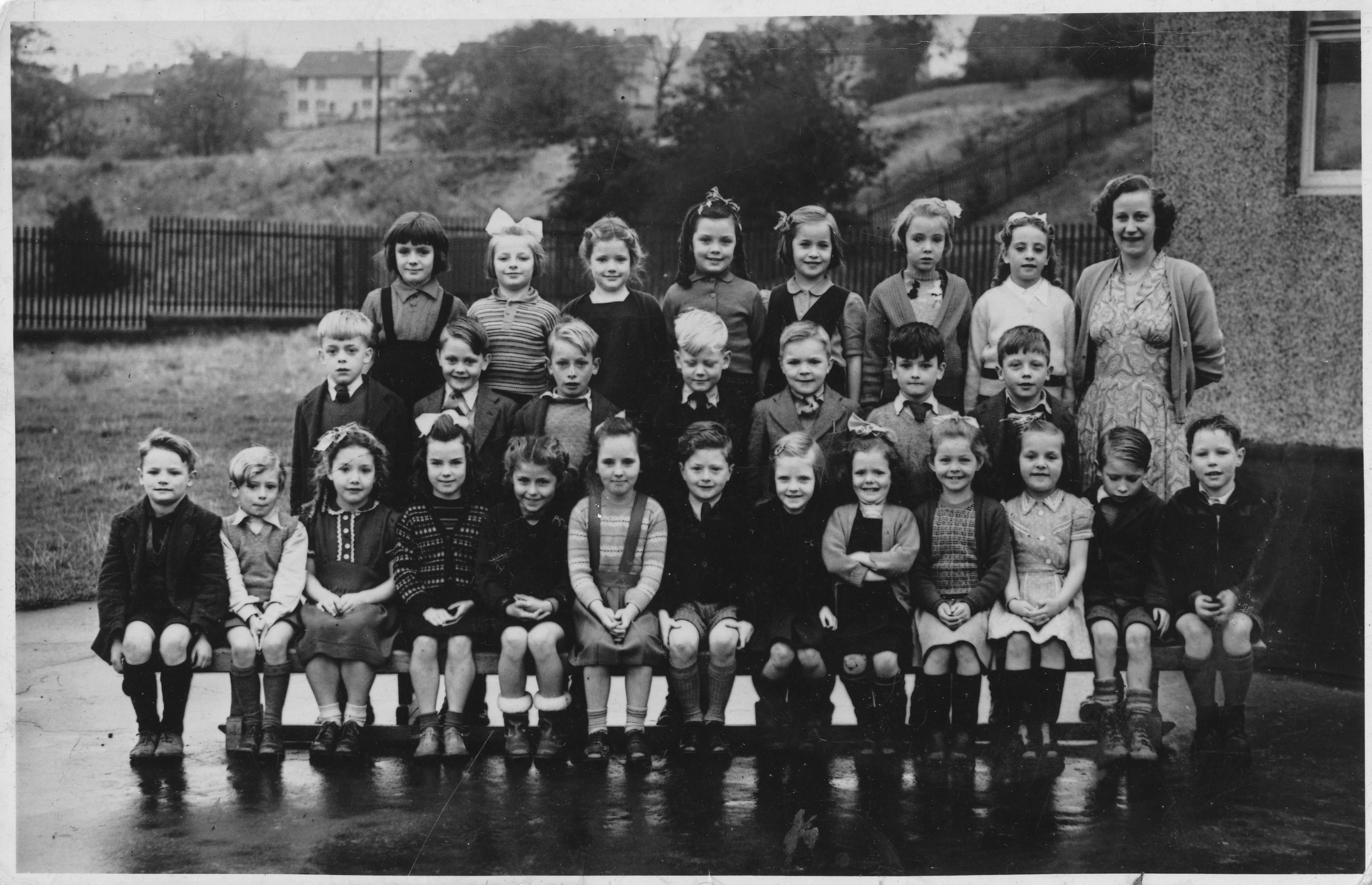 Back row from left...Ron Brown..John Burgess..Billy Gilmour..Robin Chislhom..Derek Frew..Billy Gilfillan..John Sharp..Ian McKerrow. Teacher Mary Bunting.