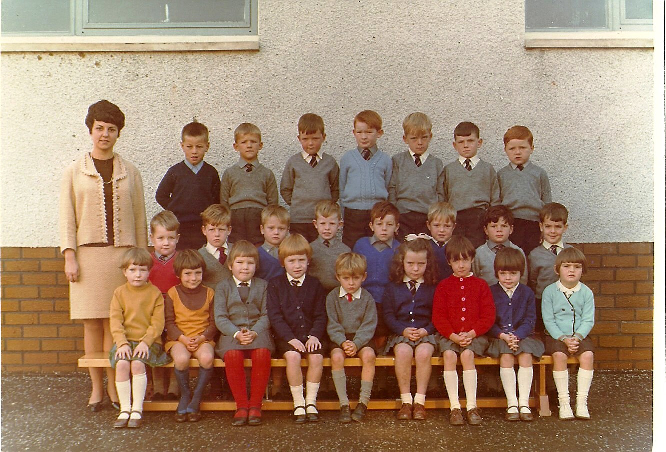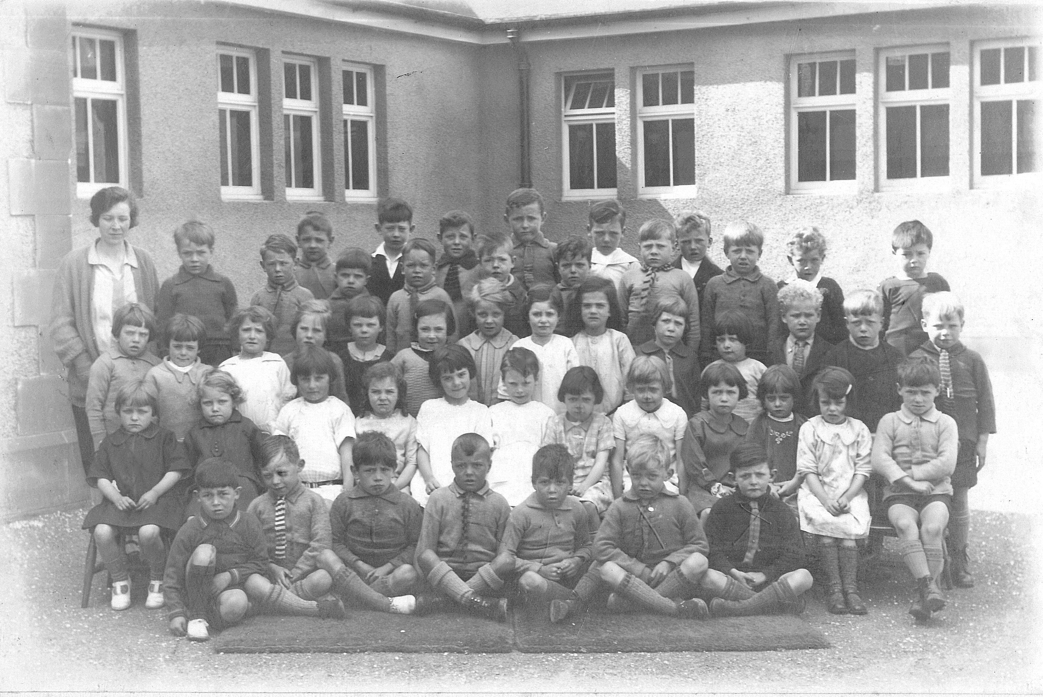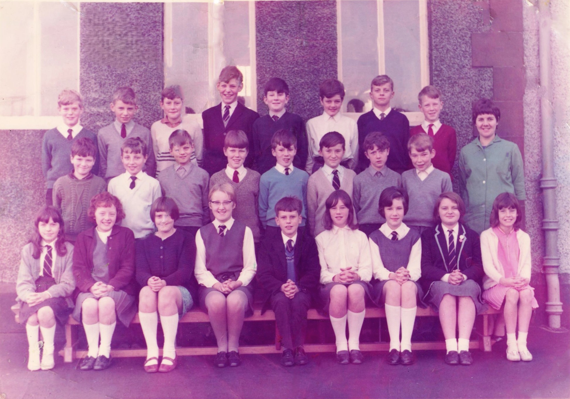 Back row from left...Ron Brown..John Burgess..Billy Gilmour..Robin Chislhom..Derek Frew..Billy Gilfillan..John Sharp..Ian McKerrow. Teacher Mary Bunting.