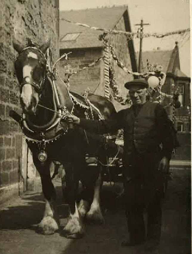 These pictures are of the Cooperative horse with Hugh Harvey and the cooperative van with Hugh Brown. Hugh's family kindly donated these pictures. It's amazing to think we came so far in such a short time. I can just remember Hugh on the horse and cart going round the village before he was upgraded to a grocers van. Now we have mobile phones and computers and we've been to the moon and back and I'm an official old age pensioner next month.