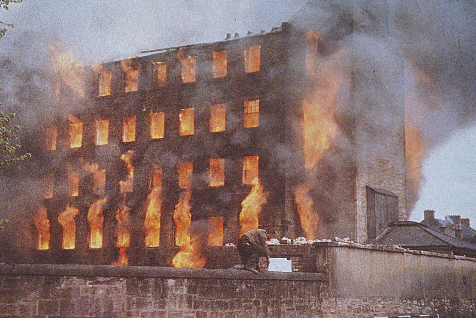 Thanks to Colin Chisholm for this picture of the old mill fire.